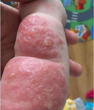 I takto může vypadat atopický ekzém zasažený stafylokokem